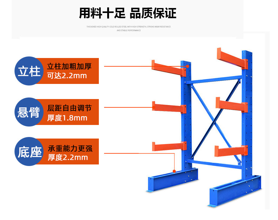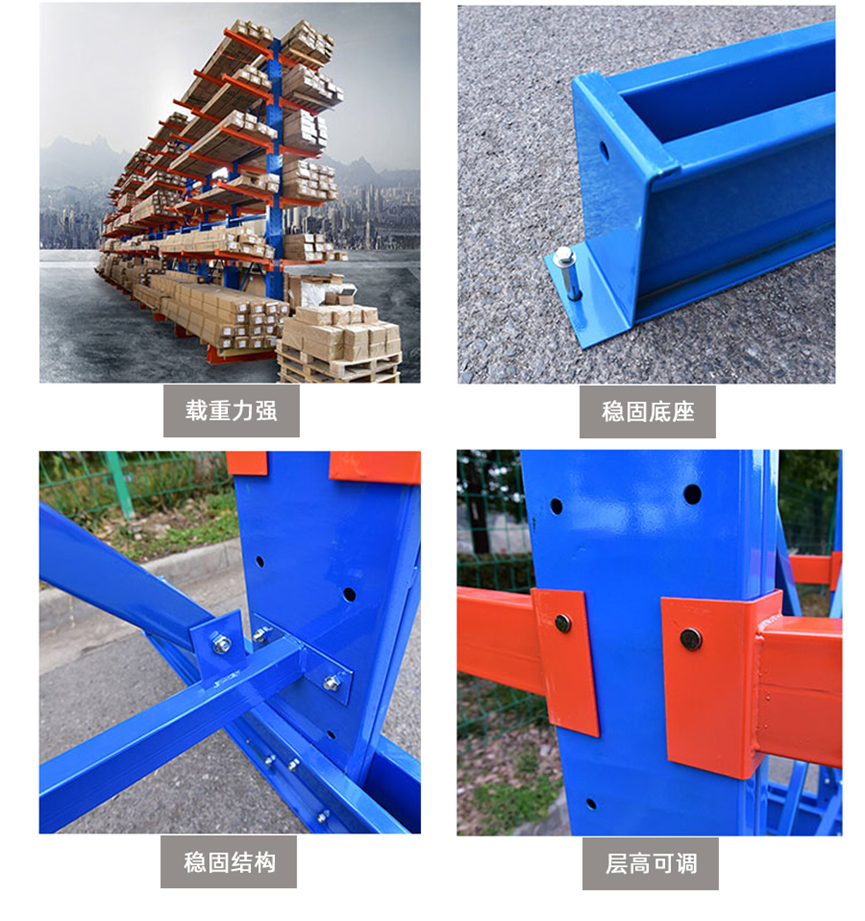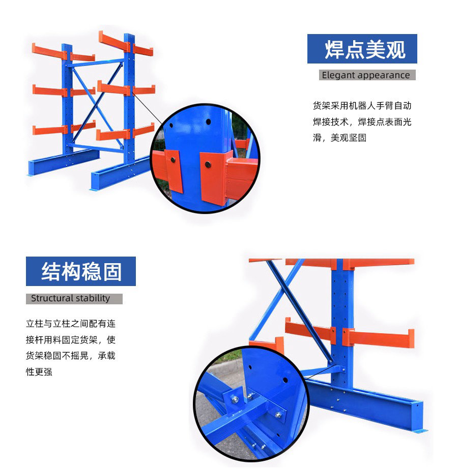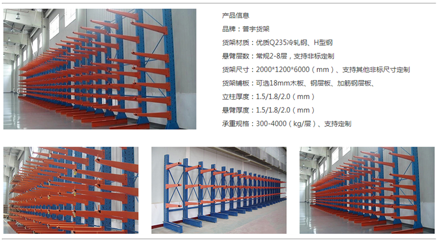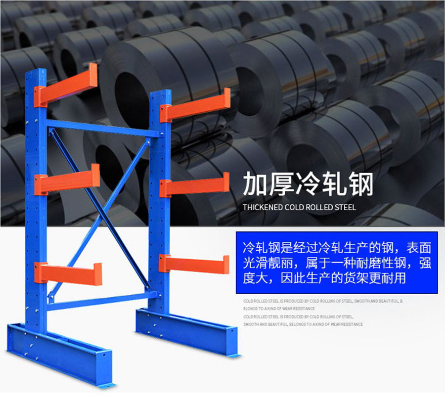 懸臂貨架是倉儲行業中適用于存放長物流、環形物流、板材、管材及不規則貨物的一種重要貨架。懸臂貨架具有結構穩定,載重能力好,空間利用率高等特點。懸臂貨架立柱采用H型鋼或冷軋型鋼,懸臂采用方管、冷軋型鋼或H型鋼,底座與立柱間采用螺栓連接式,懸臂貨架可以根據使用設計成單面懸臂貨架或雙面懸臂貨架。特別適合空間小,高度低的庫房,管理方便,視野寬闊,與普通擱板式貨架相比,利用率更高。單面懸臂貨架沿用主副架形式,可根據存儲的材料規格搭配副架延伸使用,可固定于墻體或其他建筑物增加穩固性,便于存取多用于機械制造行業和建材超市等。更多貨架產品!