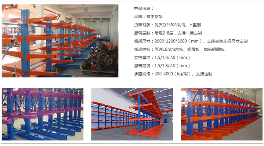 懸臂貨架是倉儲行業中適用于存放長物流、環形物流、板材、管材及不規則貨物的一種重要貨架。懸臂貨架具有結構穩定,載重能力好,空間利用率高等特點。懸臂貨架立柱采用H型鋼或冷軋型鋼,懸臂采用方管、冷軋型鋼或H型鋼,底座與立柱間采用螺栓連接式,懸臂貨架可以根據使用設計成單面懸臂貨架或雙面懸臂貨架。特別適合空間小,高度低的庫房,管理方便,視野寬闊,與普通擱板式貨架相比,利用率更高。雙面懸臂貨架沿用主副架形式,可根據存儲的材料規格搭配副架延伸使用,多用于機械制造行業和建材超市等。更多貨架!